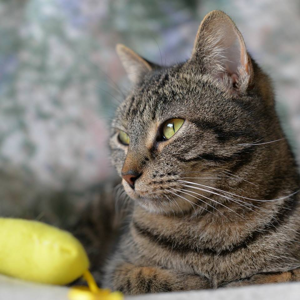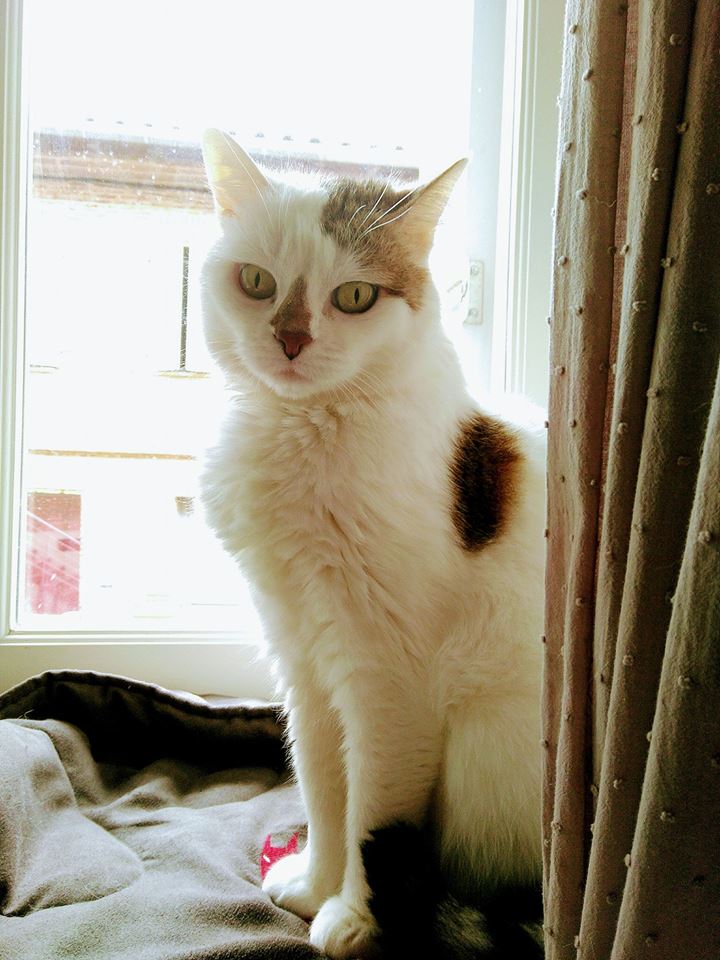 Mia, 6 ans, adoptée en décembre 2016 et nourrie aux croquettes végétales « Amicat » depuis 2017.
